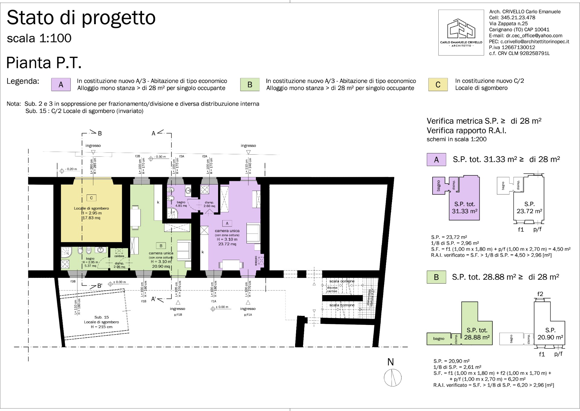 Tipo di intervento | Ristrutturazione con frazionamento (e parziale cambio d'uso) dell'immobile in tre unità abitative indipendenti.